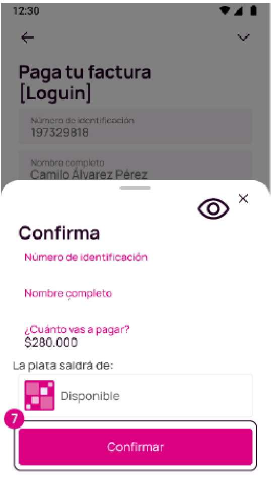 - Confirma los datos en “Confirmar” y listo, ya pagaste la factura.