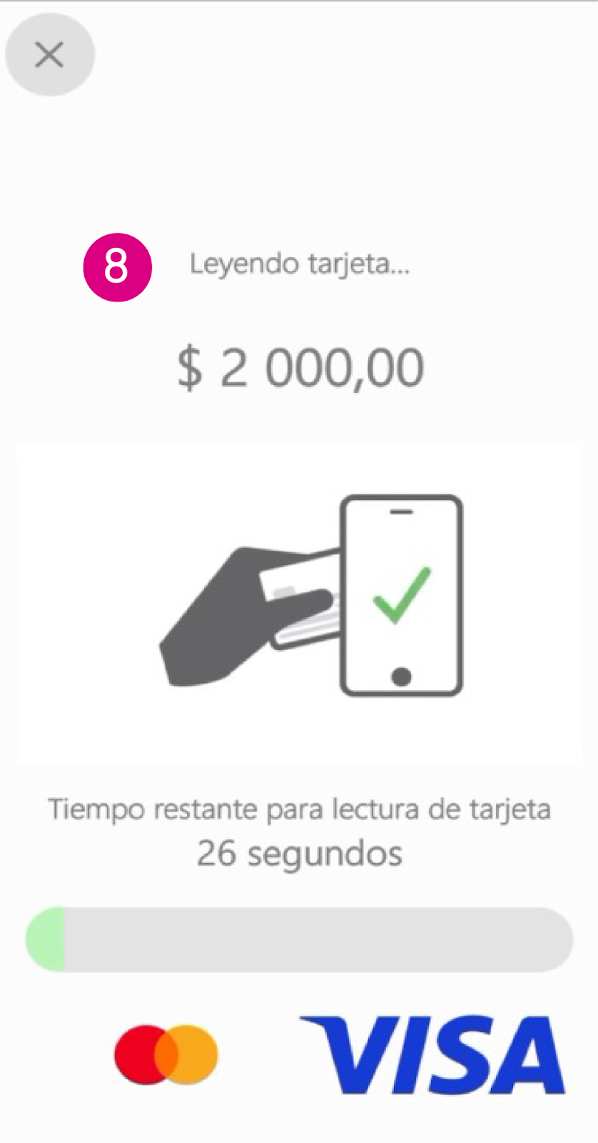 No debes alejar la tarjeta del dispositivo hasta que no se haya terminado el pago. - Después, toca “Volver” para revisar el estado del pago.