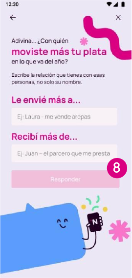 8. Luego, podrás adivinar a quién le enviaste y de quién recibiste más plata en lo que va de 2025. Llena los campos solicitados y selecciona “Responder”.