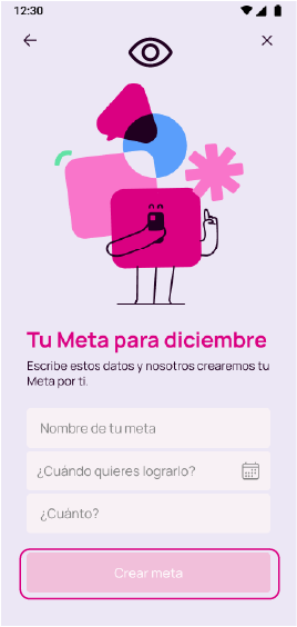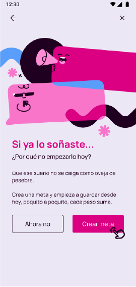 11. Te aparecerá hablemos de tus sueños y metas. Completa los datos solicitados y haz clic en “Crear Meta”.