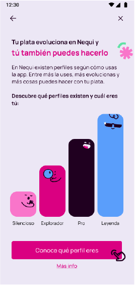 12. Para finalizar, ves los diferentes perfiles de nuestros usuarios Nequi y sabrás en cuál estás, según la forma en la que usas tu plata.